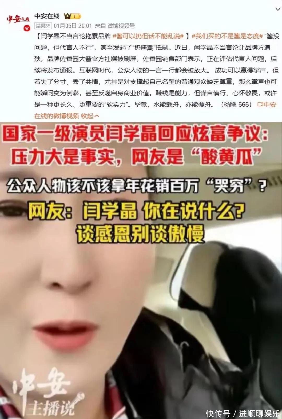 部分官媒也针对这个情况进行了锐评,可以说是言辞犀利,句句戳着她的心窝,全都说在了点上。【极目新闻】在评论中明确表示,明星感觉压力大,可以改行,哭穷大可不必。对于明星的哭穷普通人不会共鸣,感觉到的只是荒谬与隔阂。【中安评论】公众人物若失了分寸,丢了共情,对普通人缺乏尊重,掌声也会成为倒彩。看闫学晶一家一开始的举动,想来是没认识到自己错误,不过事情闹到如此地步,她应该已经幡然醒悟了。